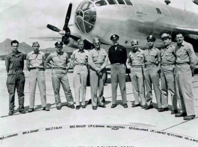 There was a considerable amount of swapping of flight crews and airplanes within the squadron and there was even a little jealousy within the bomb groups. Crews flying bombing runs over Japan were a little miffed that Colonel Tibbets’ crew got the best planes, but never flew missions. As we know now, there were three aircraft of note: Colonel Tibbets’ Enola Gay (named after his mother), Bock’s Car, and The Great Artiste.