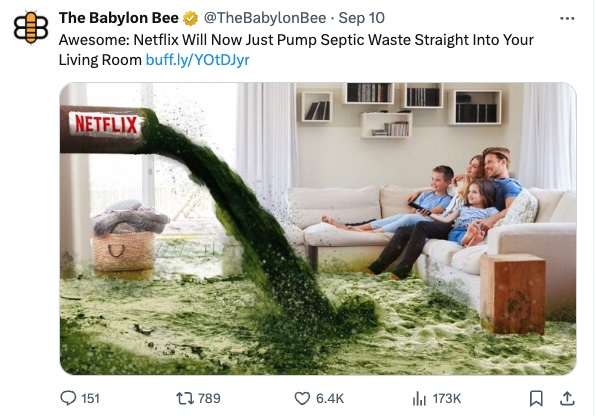 For example, The Babylon Bee once did a joke about how an abortion pill got lost in the mail and failed to arrive on time, resulting in a beautiful baby being born.