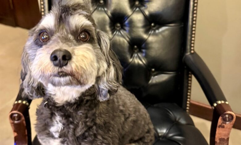 A Cavapoo named Rip may quietly walk around the Clay County courtroom during an abuse or neglect hearing, bringing smiles to faces