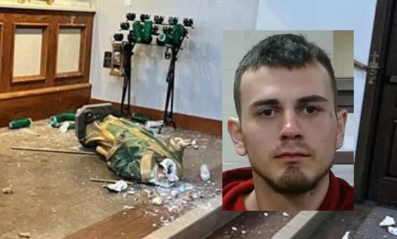 Police have arrested a 23-year-old Saline County man in connection with extensive vandalism at St. Patrick Catholic Church of Wichita. The suspect was apprehended Sunday after investigators discovered damaged statues, broken glass, and hate speech graffiti that included writings from a satanic website. The vandal had also burned an American flag.